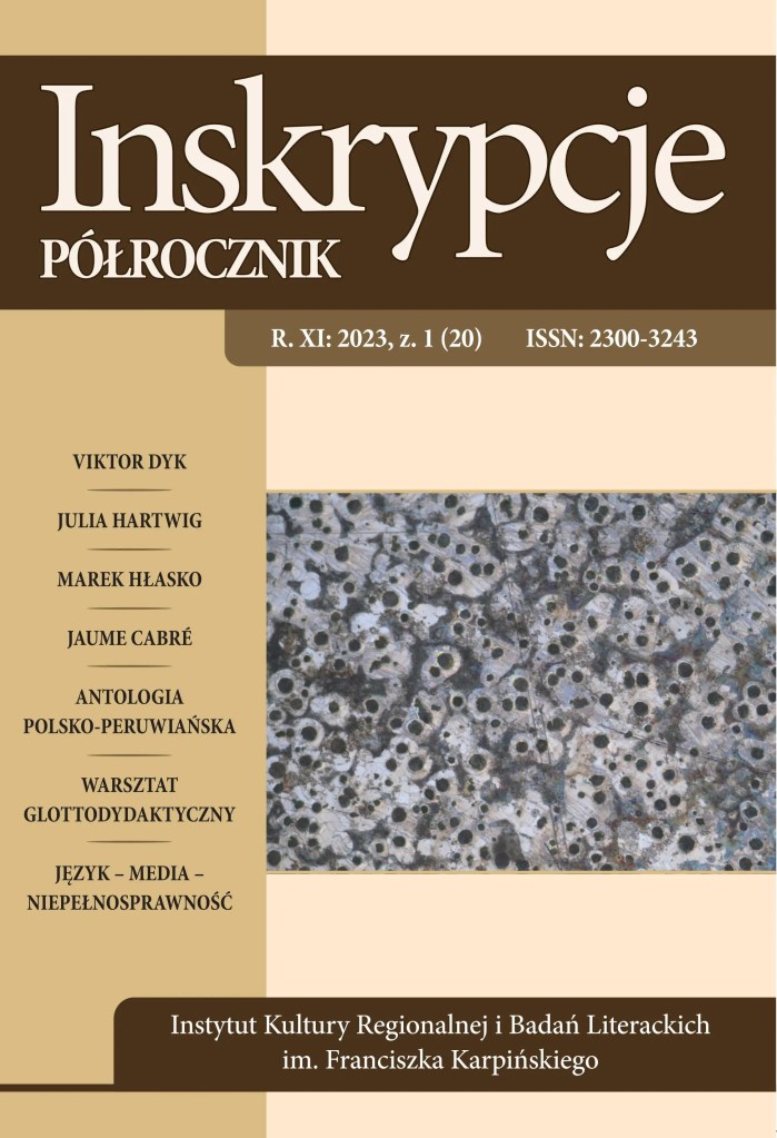 Zapraszamy do lektury oraz zakupu najnowszego numeru czasopisma „Inskrypcje” (2023, z. 1). W numerze odnaleźć można artykuły i szkice poświęcone współczesnym zjawiskom literackim, a także językoznawczym. Znaczna część zeszytu poświęcona jest zagadnieniom glottodydaktycznym.