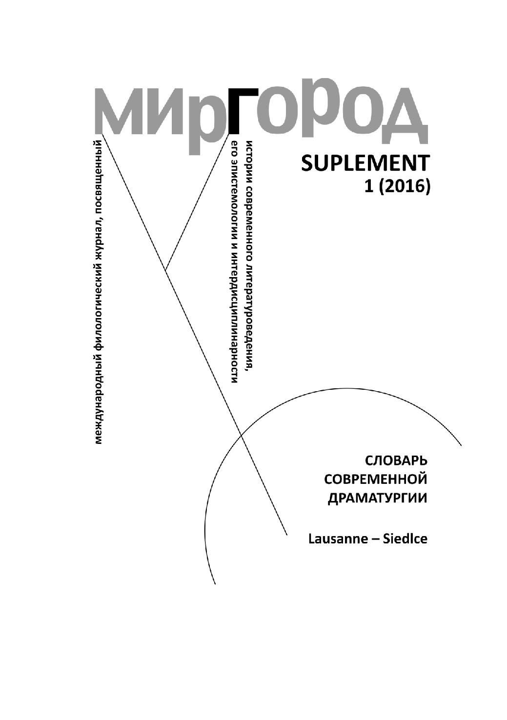 26/ „Миргород”. Suplement 2 (2016). Словарь Современной Драматургии. Red. Anastasia de La Fortelle (Université de Lausanne), Roman Mnich (Uniwersytet Przyrodniczo-Humanistyczny w Siedlcach). Lausanne-Siedlce 2016.